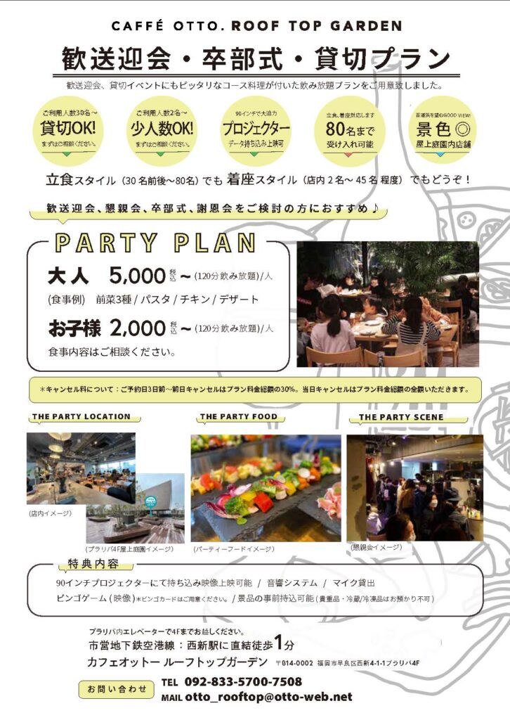 周りを気にせず楽しめる、貸切パーティープラン。